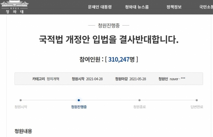 국적법 개정안 입법 예고가 되면서 국민청원 반대 의견이 몰리면서 화젯거리가 되고 있습니다.